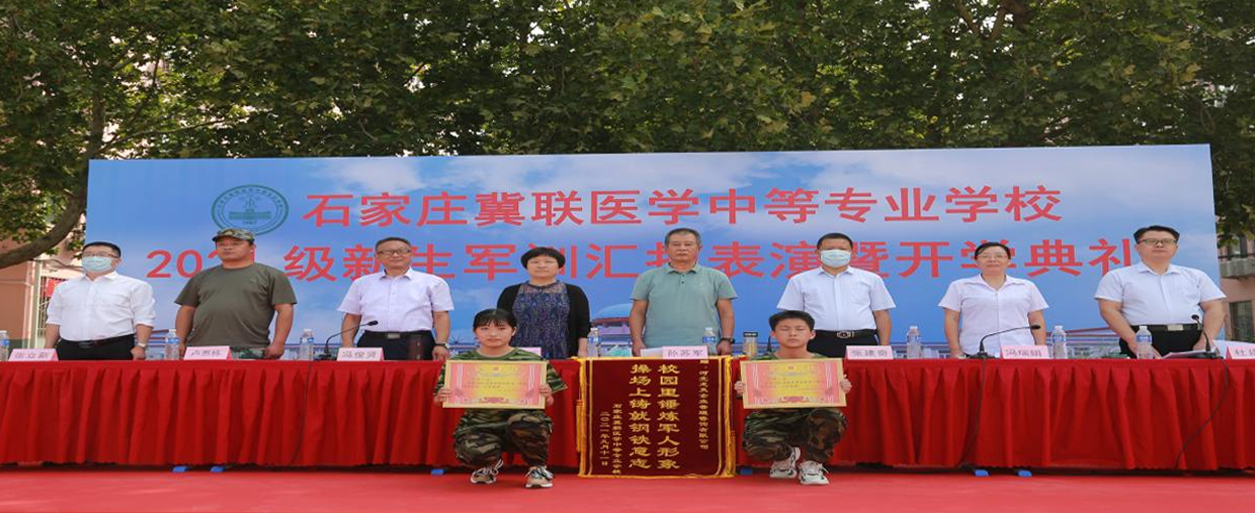 “古之立大事者,不惟有超世之才,亦必有坚忍不拔之志”。赤日当空,皎阳似火,2021年9月11日,上午9时,石家庄冀联医学中等专业学校2021级新生军训汇报表演暨开学典礼在威严、神圣的国歌声中拉开帷幕。