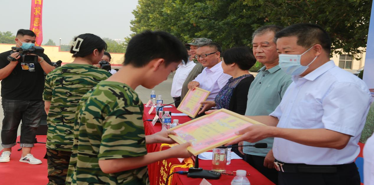 最后,由冯瑞捐副校长宣布获奖班级名单,校领导为本次军训汇报表演获奖的班级,颁发奖状,并向河北龙焱军训团颁发锦旗。