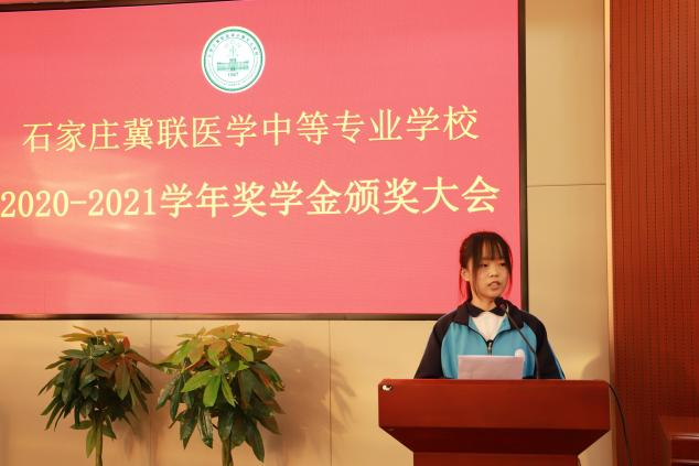 冯瑞娟副校长宣读了《石家庄冀联医学中等专业学校2020-2021学年奖学金获奖人员的决定》。