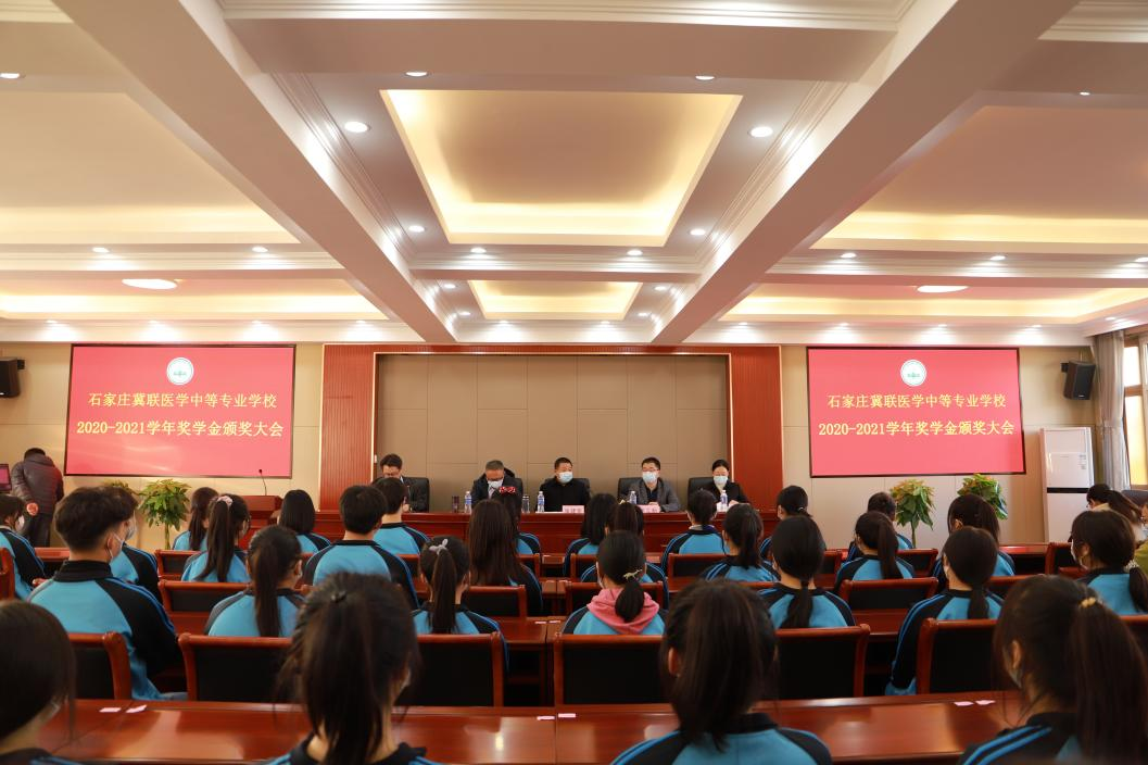 2021年11月13日下午,石家庄冀联医学中等专业学校办公楼五楼会议室充满了欢快喜悦的气氛,在这里正在隆重举行2020-2021学年奖学金颁奖大会。