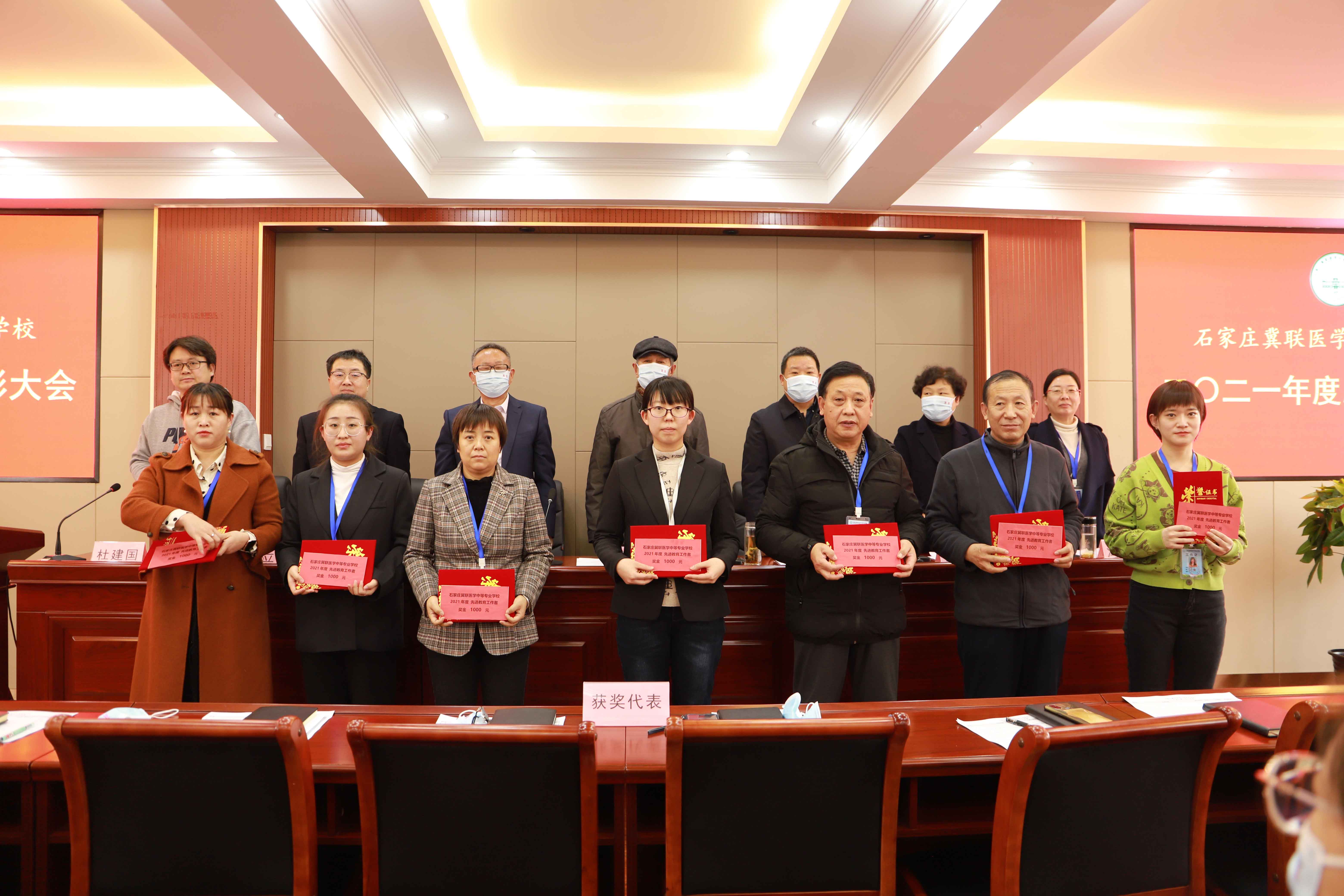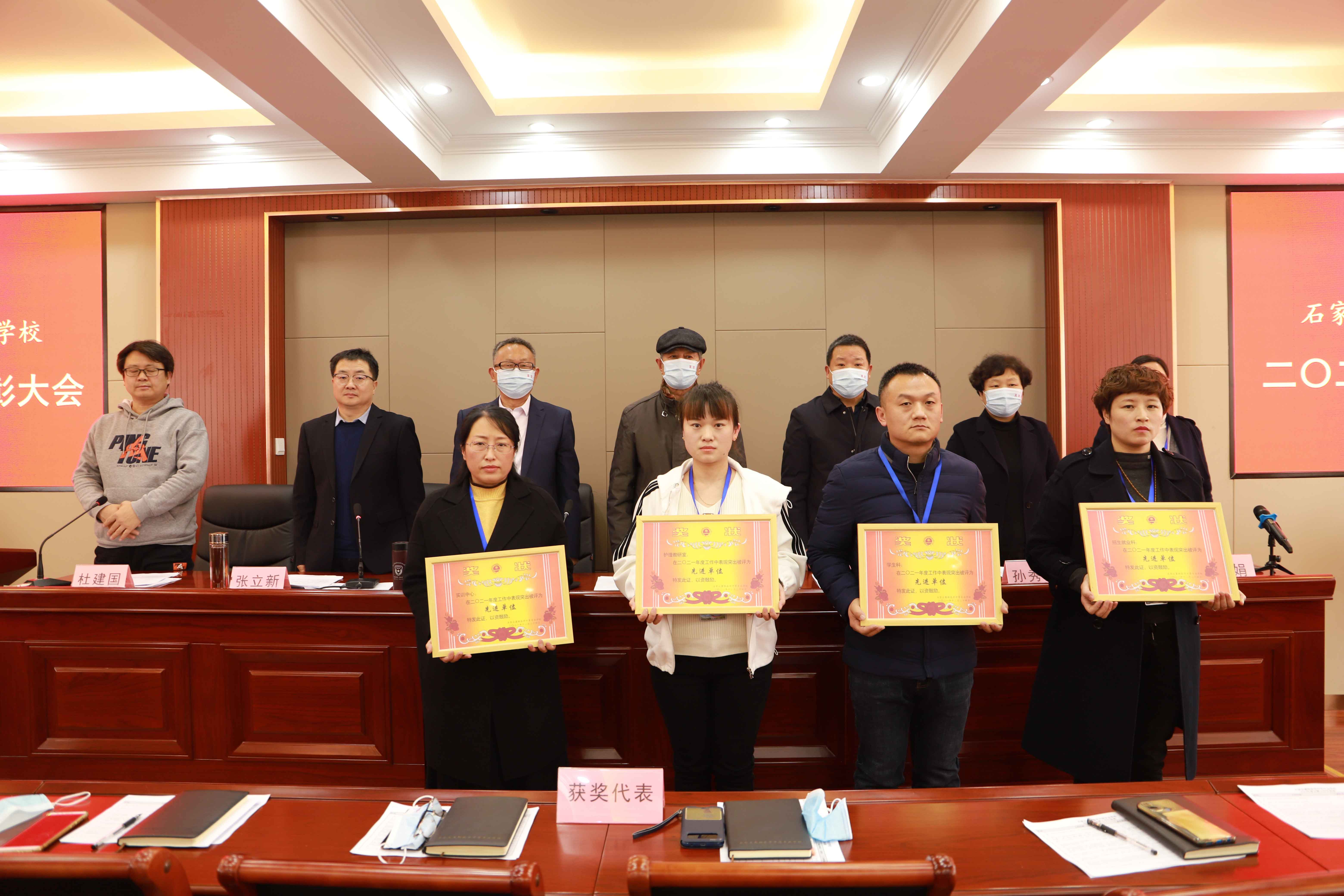 会上,杜建国副校长就2021年度招生工作作了总结汇报,冯俊贤校长从十个方面对2021年度学校工作进行了全面总结分析,冯瑞娟副校长宣读了《关于2021年度先进单位和个人表彰奖励的通报》,大会还对4个先进单位及21名优秀个人进行了表彰奖励,获奖代表进行了发言。