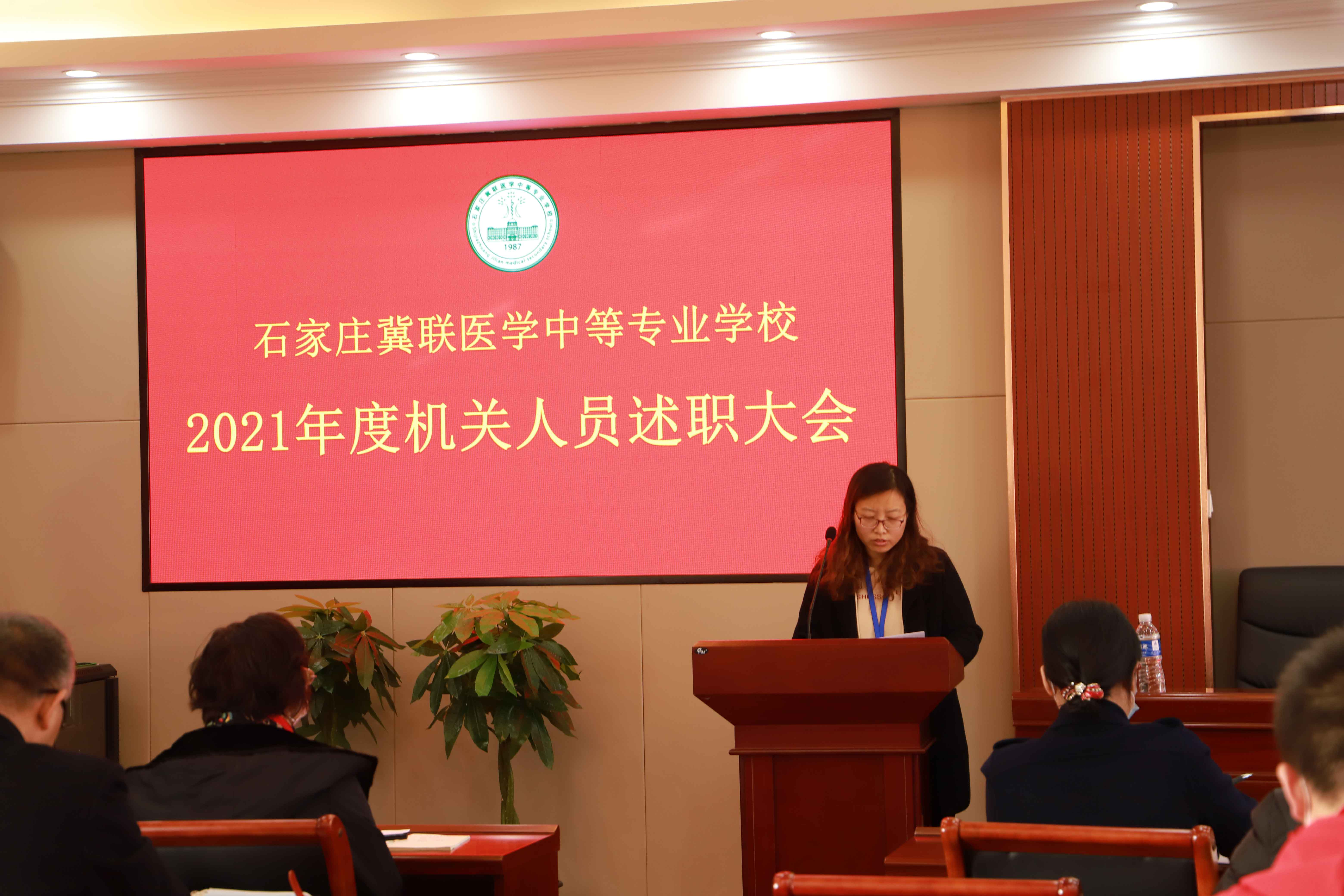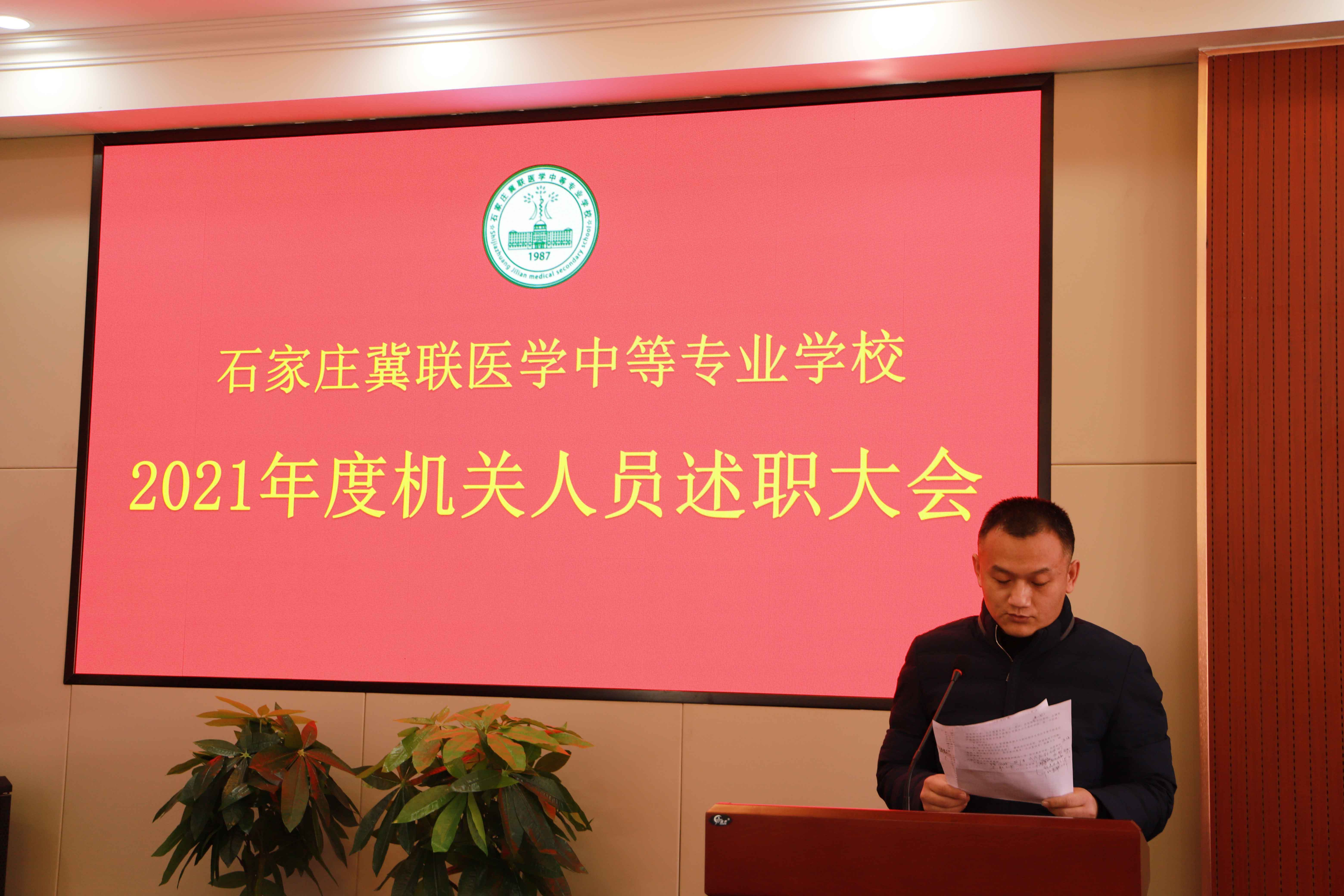 为进一步加强教职工队伍建设,全面准确地评价教职工全年工作表现及履行职责情况,客观公正地实施考核和激励,扎实推进学校工作的不断发展。石家庄冀联医学中等专业学校按照《石家庄冀联医学中等专业学校年度教职工考核办法》,对德、能、勤、绩、廉五个方面进行全面考核。自2021年12月19日至22日,分机关、班主任、教师三个阶段进行个人述职报告会。