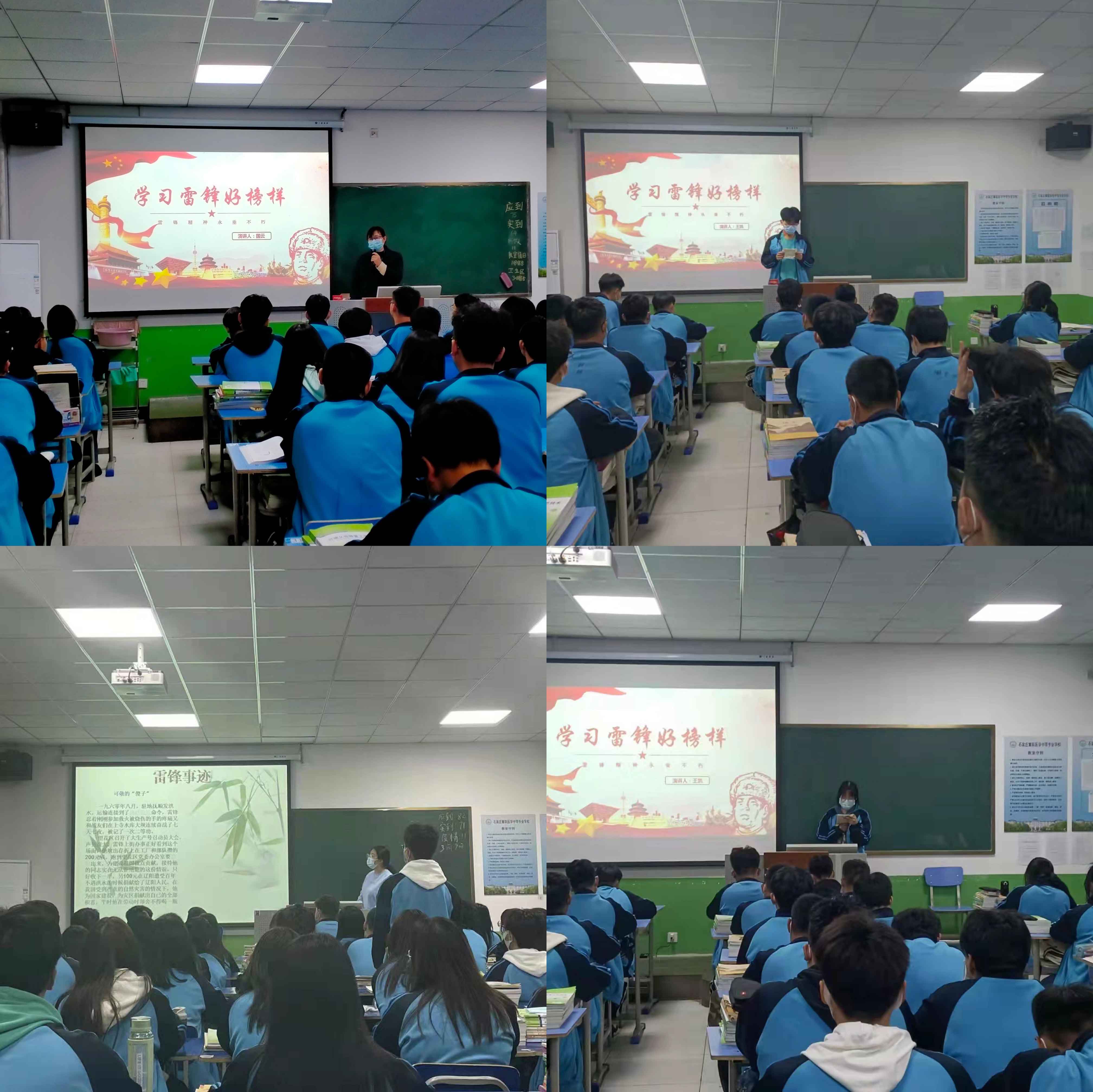 在班会课上,各班级通过视频播放、课件展示、故事分享、学生即兴演讲、唱雷锋歌曲等多种方式,展示雷锋短暂而又精彩的一生。一个个真实的故事生动阐释了雷锋热爱党、热爱祖国、热爱社会主义的崇高理想和坚定信念;服务人民、助人为乐的奉献精神;干一行、爱一行、专一行、精一行的敬业精神;锐意进取、自强不息的创新精神;艰苦奋斗、勤俭节约的创业精神。