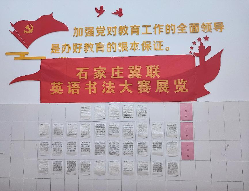 英语是通向世界的窗口,是国家发展和改革开放的需要。为提高中职生对英语书法的兴趣,规范中职生的英语书写,培养良好的英语书写习惯,在听、说、读的基础上,全面提高写作技能,营造良好的英语学习氛围,为同学们提供一个展示自我的舞台,在中国共产党第二十次代表大会召开之际,我校英语教研组教师团体组织全校学生开展了英语书法大赛。本次大赛中,2021级和2022级全体学生积极参与,初赛有266人参加,决赛中产生了一等奖5名、二等奖10名、三等奖20名、优秀奖25名。60份获奖优秀作品在教学楼大厅进行了公开展示。