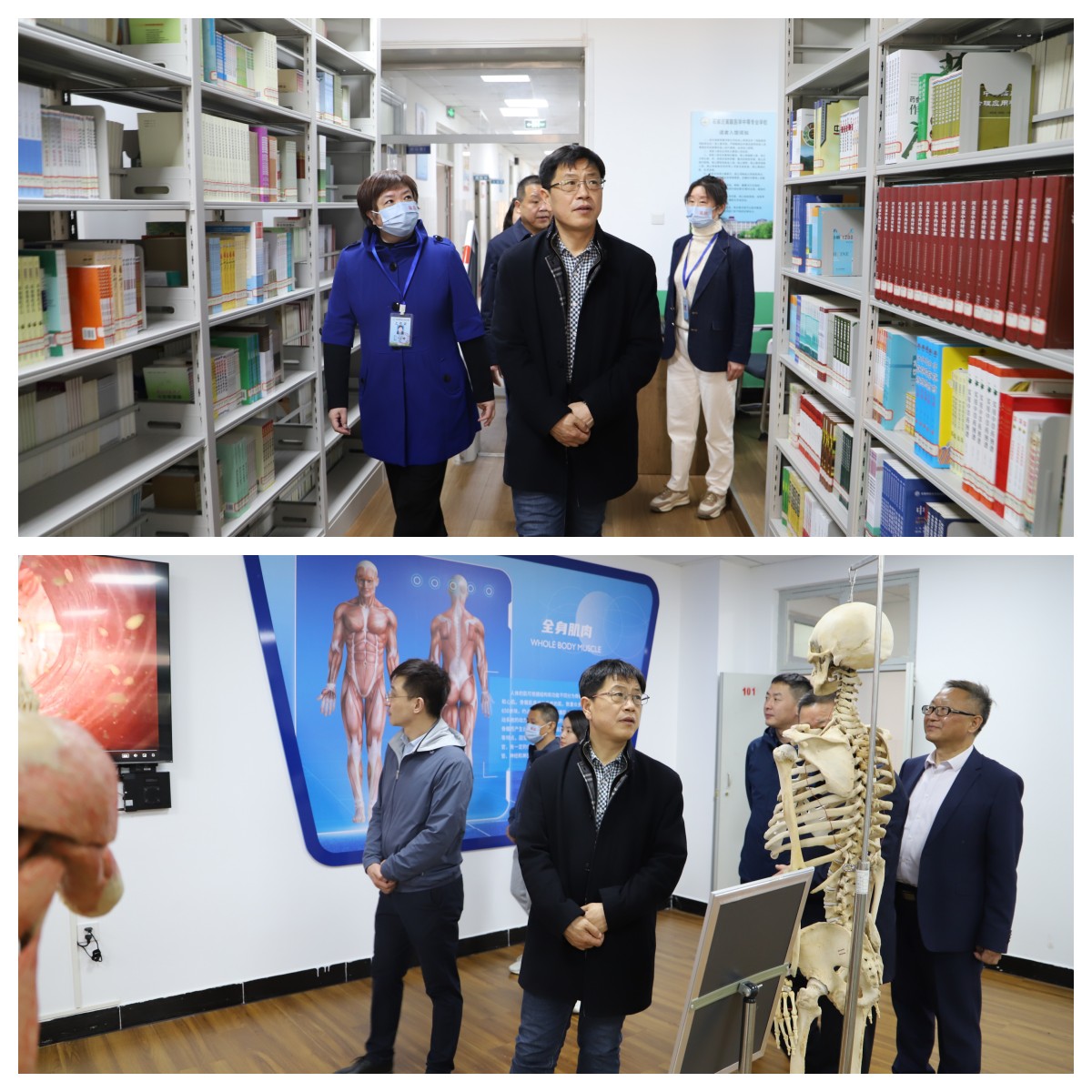 专家组在张建奇董事长和冯俊贤校长的陪同下首先检查了冀联医院,然后对学校7号宿舍楼、图书馆、教室、实训楼、餐饮中心等进行了实地察看。