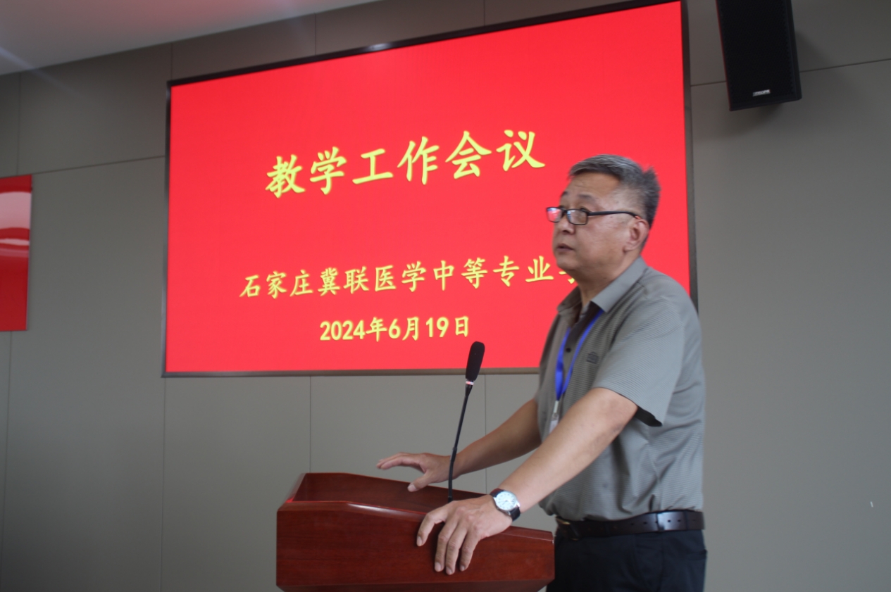 2024年6月19日,学校组织召开了2023—2024学年第2学期教学工作会议,会议由冯俊贤校长主持,参加会议的有学校领导、教研部全体教师、实训中心、图书馆和机关全体工作人员共计83人,河北冀兆联科技发展有限责任公司邹卫董事长出席会议并讲话。