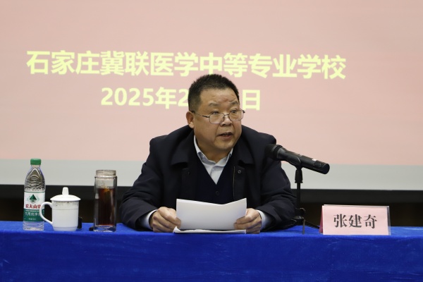 2 月 14 日,石家庄冀联医学中等专业学校新学期开学动员部署大会在西校区报告厅隆重举行。学校全体教职员工共180余人参加了会议,会议由郭衍江副校长主持,学校张建奇董事长主席会议并讲话。