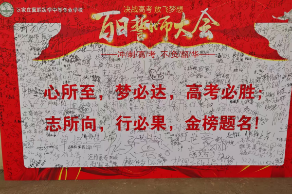 2025年2月28日,早春的冀联校园,草长莺飞、翰墨飘香,在距离高考已近百日的冲刺时刻,学校2025年高考百日誓师大会在西校区隆重举行,巨幅标语“十载寒窗百日苦练、何等英才夺桂冠;一腔热血万丈豪情、我辈健步登金榜”高悬在主席台两侧,大会以“奋斗百日铸辉煌,青春无悔谱华章”为主题,通过领导动员、名师辅导、老师寄语、学生宣誓、铭志签名等环节,激励着2022级升学班全体学生以决战决胜的斗志、分秒必争的决心,共同吹响冲刺高考的号角。
