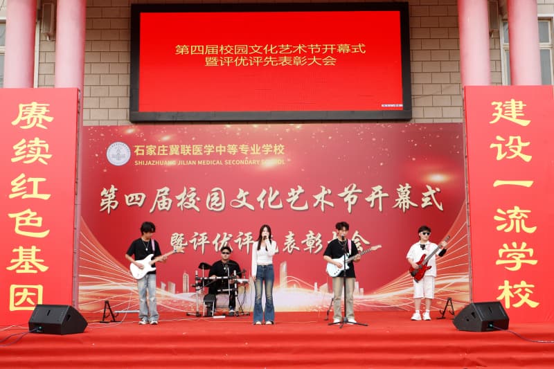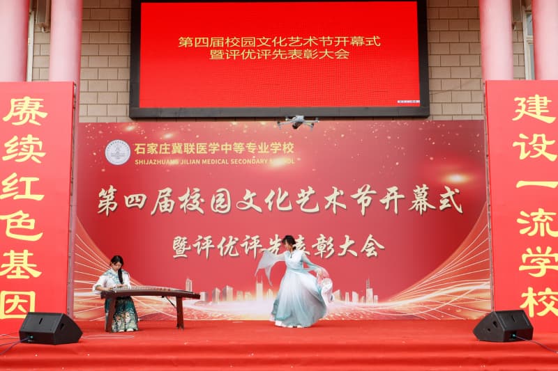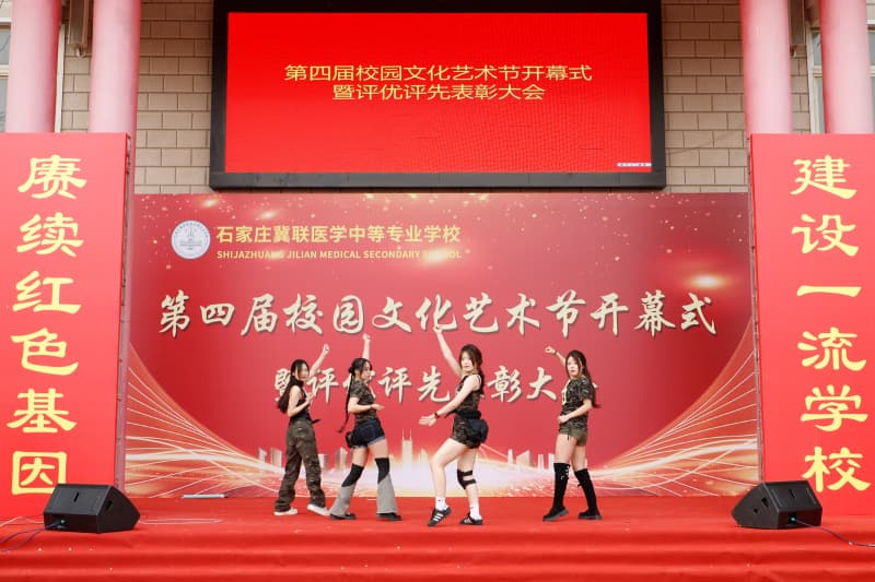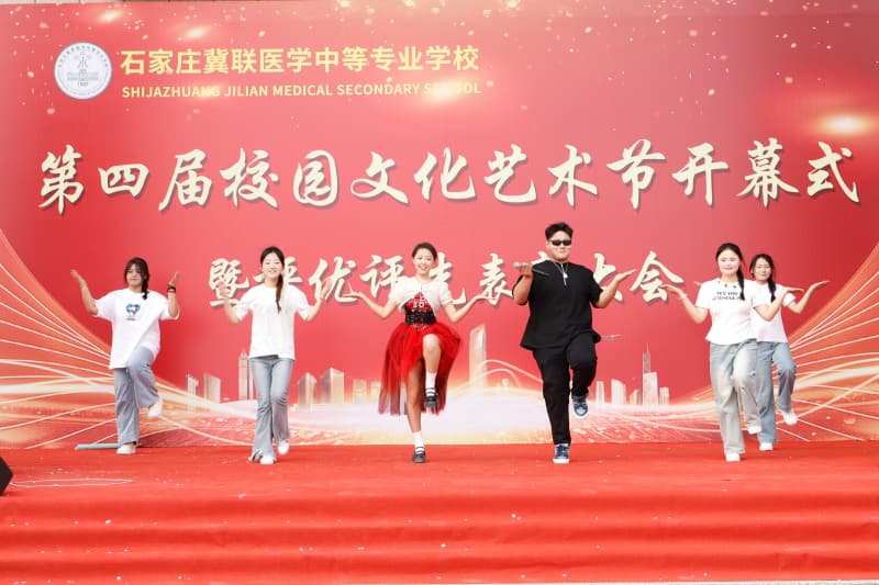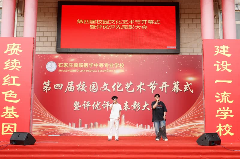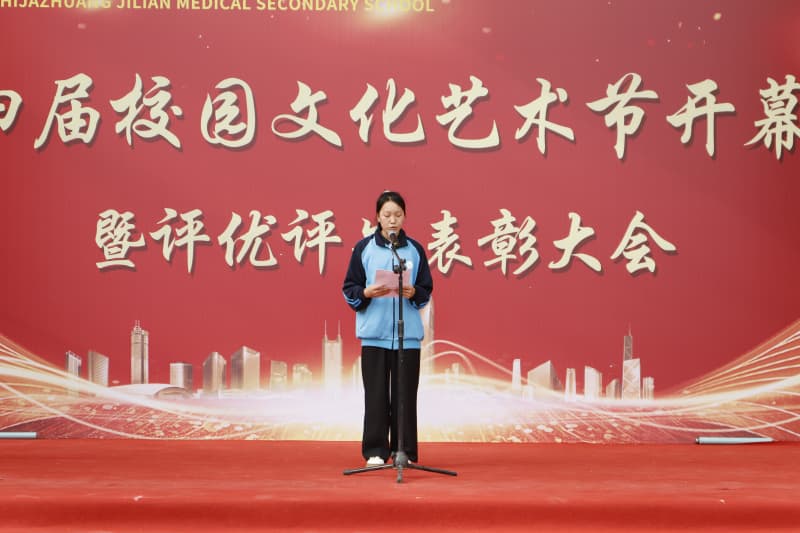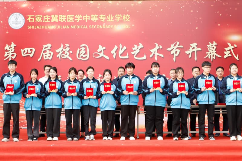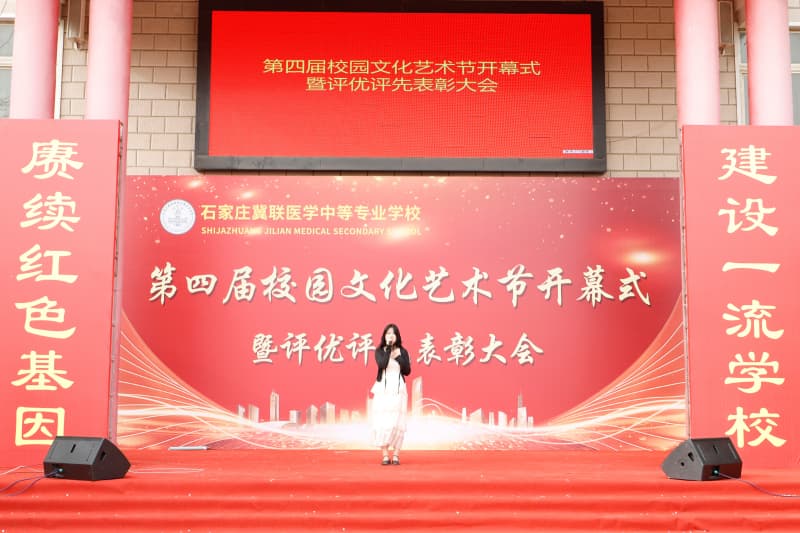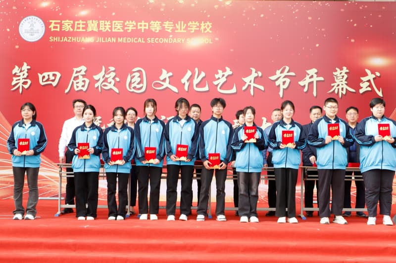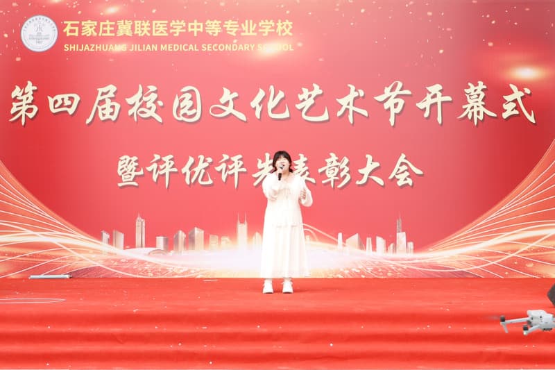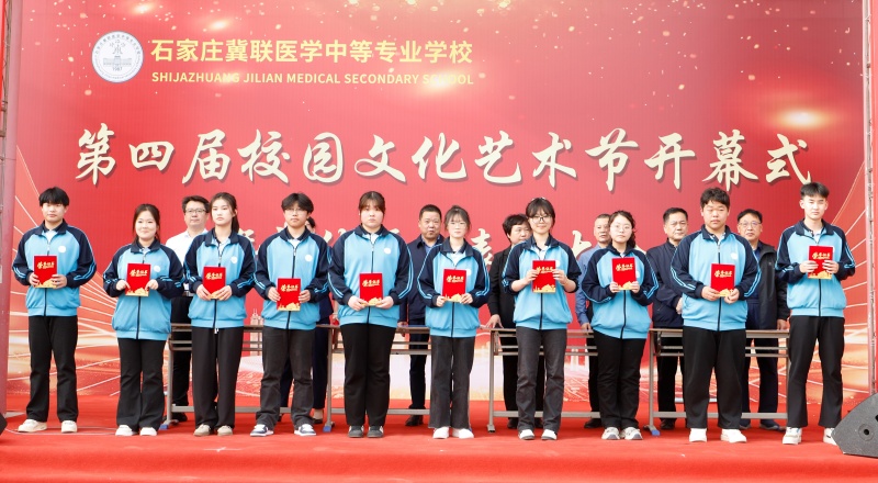 2025 年 4 月 16日下午,石家庄冀联医学中等专业学校隆重举行第四届校园文化艺术节开幕式暨评优评先表彰大会。河北冀兆联科技发展有限公司财务总监孙秀丽、冀联医院副院长刘士超出席大会,学校领导和东校区全体师生参加大会。